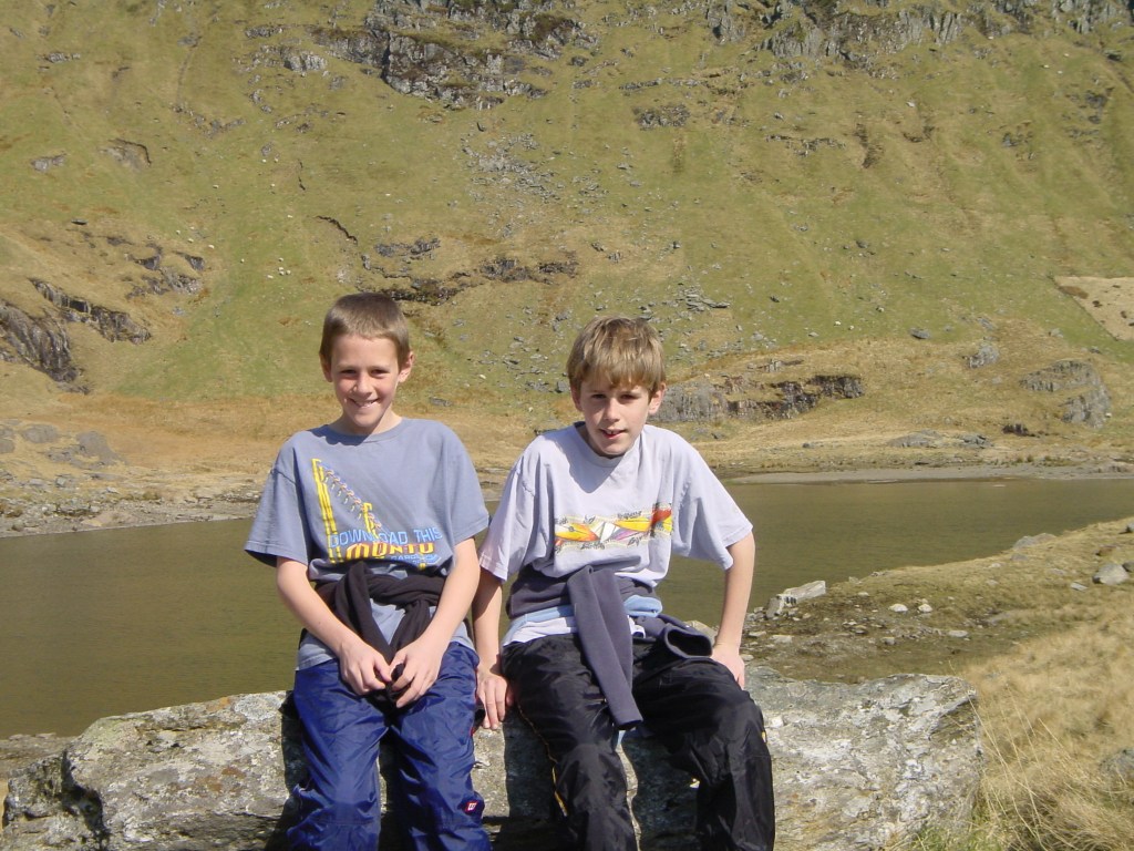 Now you may wonder why a team about to attempt to climb Mount Everest for the first time should have based their training and the testing of their equipment in an area of what appear to be cuddly little hills. Indeed, as the photo of my two eldest sons can attest, scaling the highest point in Snowdonia, Mount Snowdon, on a beautiful summer day, would hardly present much of a challenge to future conquerors of Everest.