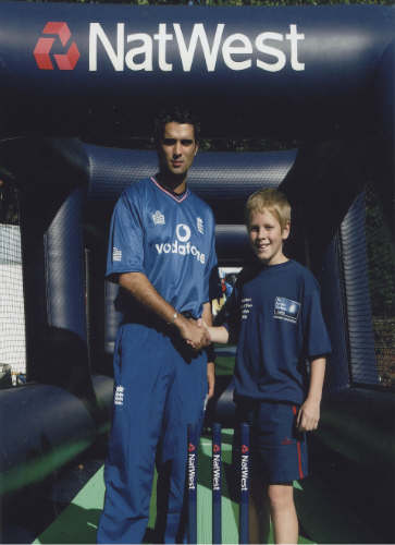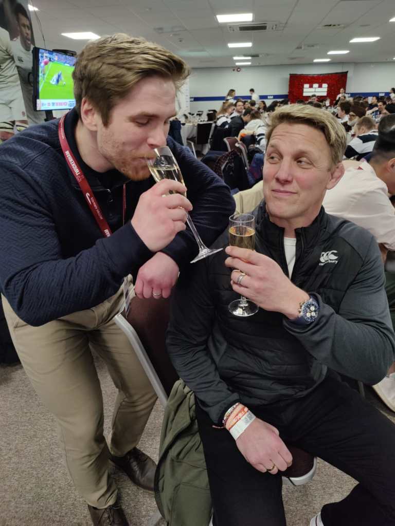 I had just returned from my usual walk past the Cape Town Stadium, along the promenade and back through Green Point Park, when I received a ‘whatsapp’ message from John, one of my sons. He said that he was at a work event, where one of the guest speakers was Lewis Moody. He wanted to know if I had that photo of him with Lewis Moody at a Milk Marketing Board event, sponsoring the England Rugby team, when they had a World Cup training camp at Pennyhill Park in Camberley. John was one of the invited mini rugby players from their school, Lyndhurst.