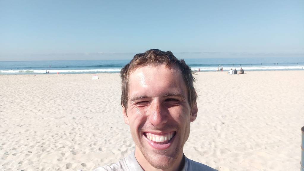 Philip arriving at the west coast of California after cycling 44 days and 4800 km from the US East coast.